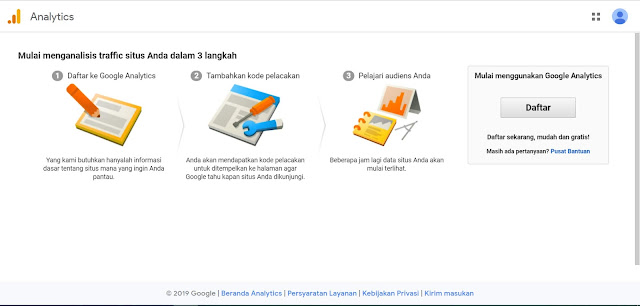 Mendaftar dalam layanan google analtycs , kamu hanya perlu mendaftar menggunakan email google